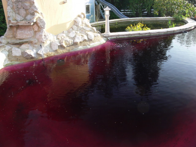 KMP in der vorgeschriebenen Dosis in den Koi-Teich ...., der Pflanzenfilter wurde derweilen abgesperrt, sodaß sich der "FLOW" nur innerhalb der Rohre bewegte.....