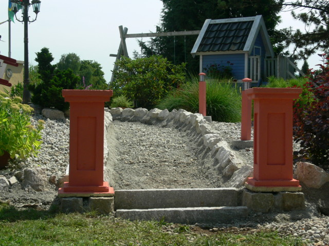 Aufgang zur Terrasse bzw. Teichbrücke.....